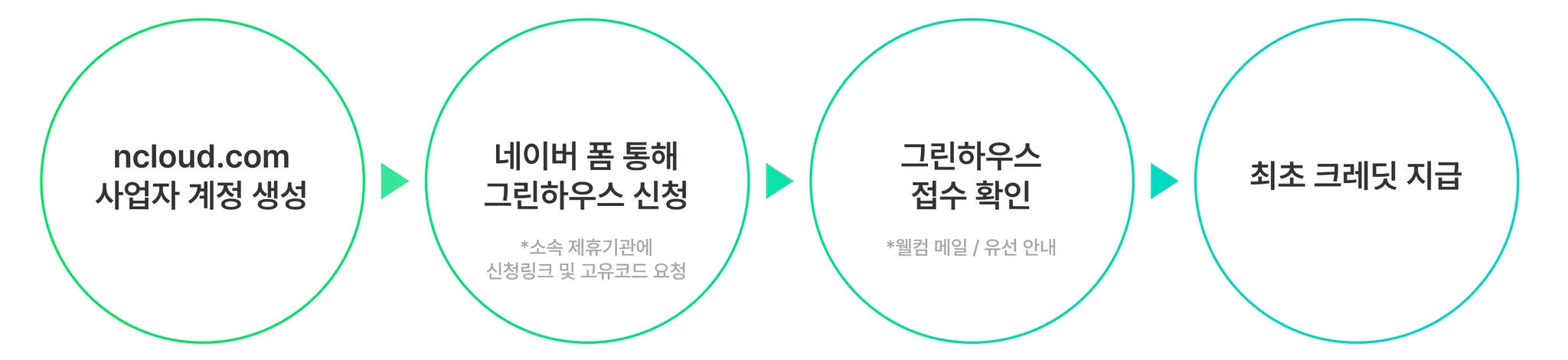 그린하우스 크레딧*은 네이버클라우드 플랫폼 전 상품에 사용할 수 있습니다. 지원하는 크레딧의 총액은 최대 1억원이며, 최대 2년간 분할 지급 됩니다.