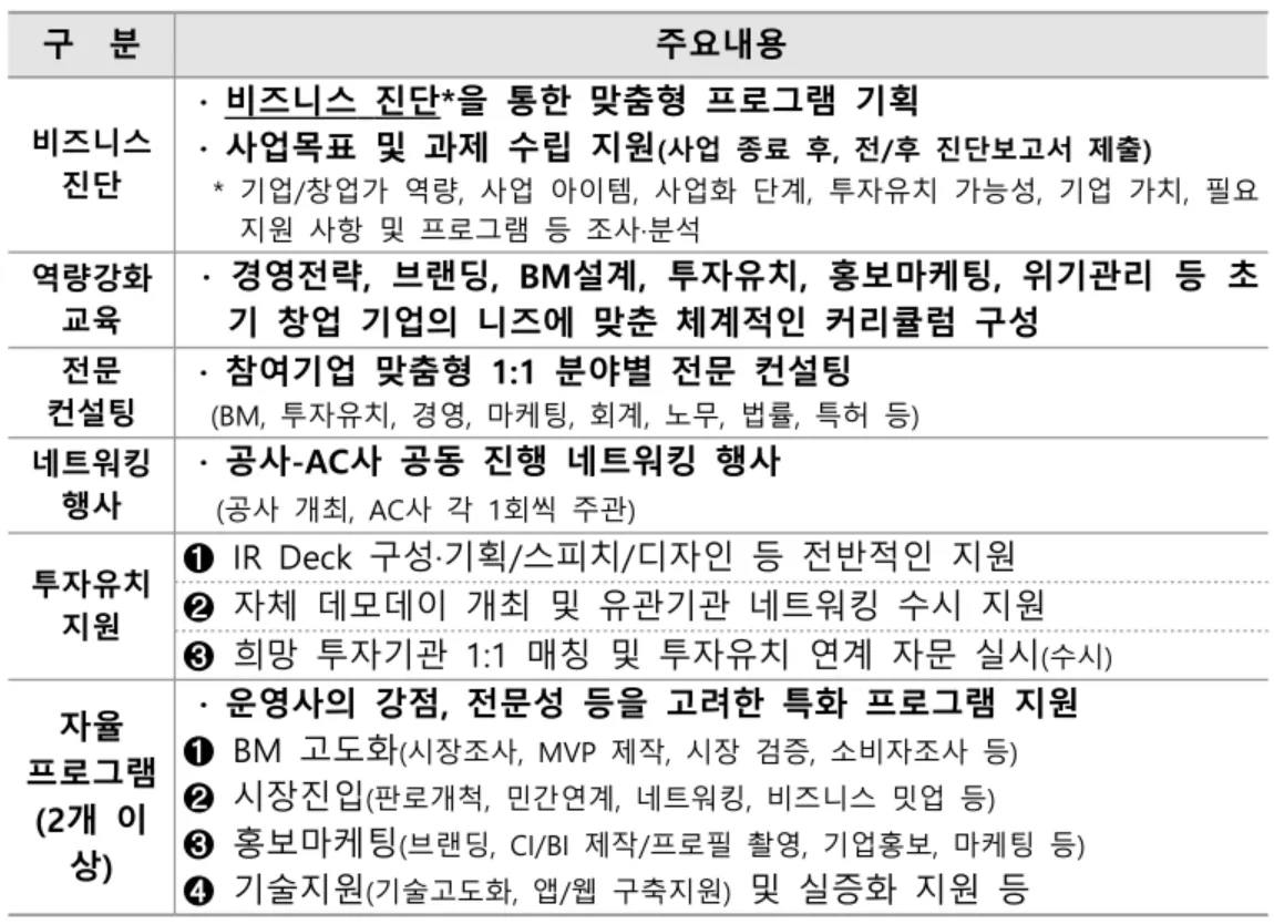 전문 액셀러레이터 연계 관광 액셀러레이팅 프로그램 제공(하단 이미지 참고)